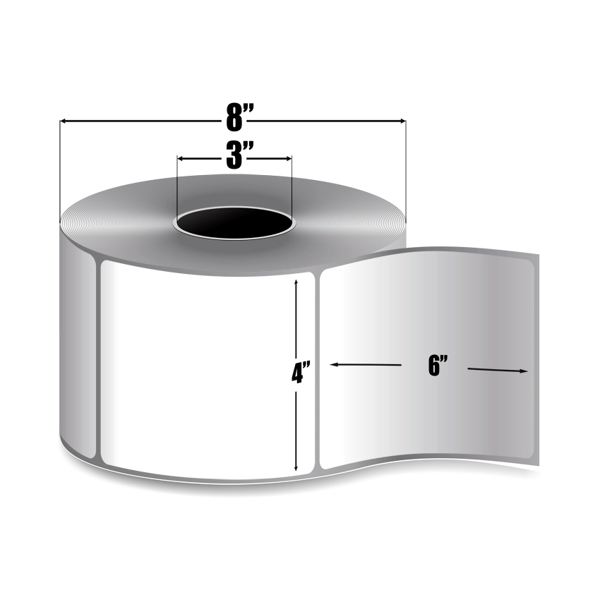 This 4" x 6" White Direct Thermal label comes on a 3" core with a 8" outer diameter. There are 4 rolls per box and 1000 labels per roll.