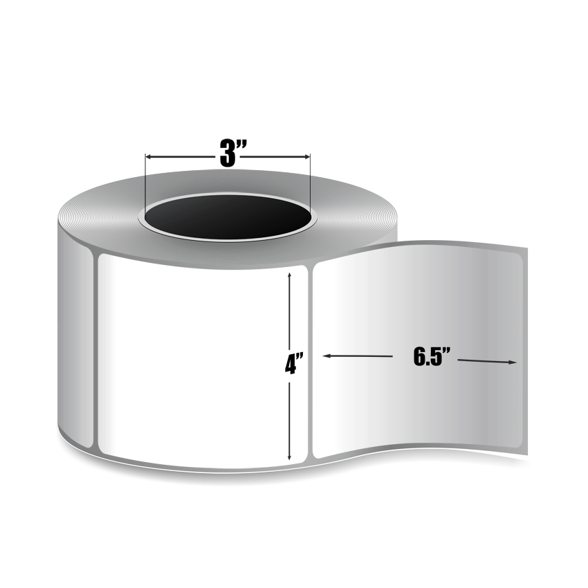This 4" x 6.5" White Direct Thermal label comes on a 3" core with a 8" outer diameter. There are 4 rolls per box and 925 labels per roll.
