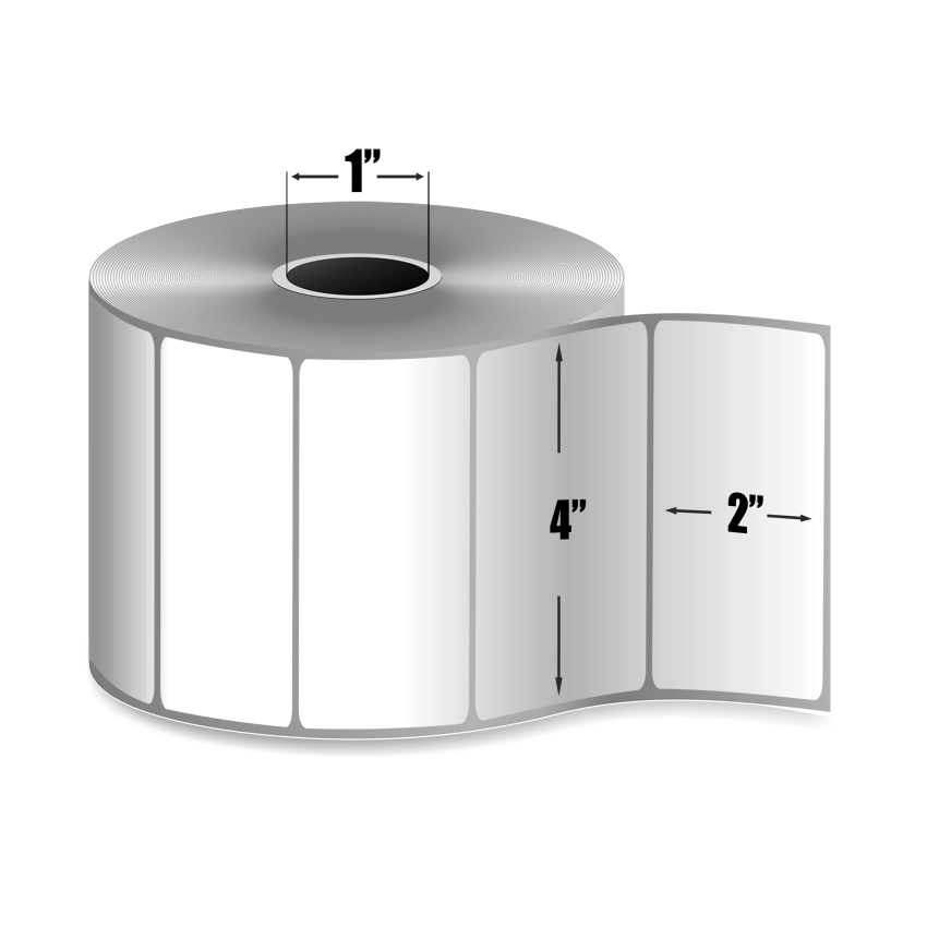 This 4" x 2" White Direct Thermal label comes on a 1" core with a 4" outer diameter. There are 16 rolls per box and 715 labels per roll.