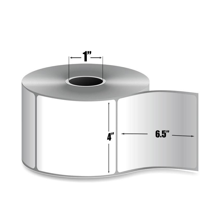 This 4" x 6.5" White Direct Thermal label comes on a 1" core with a 4" outer diameter. There are 16 rolls per box and 230 labels per roll.