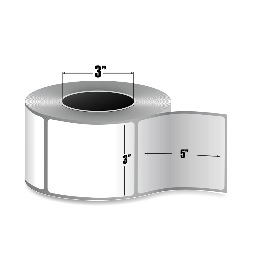 This 3" x 5" White Direct Thermal label comes on a 3" core with a 8" outer diameter. There are 4 rolls per box and 1190 labels per roll.